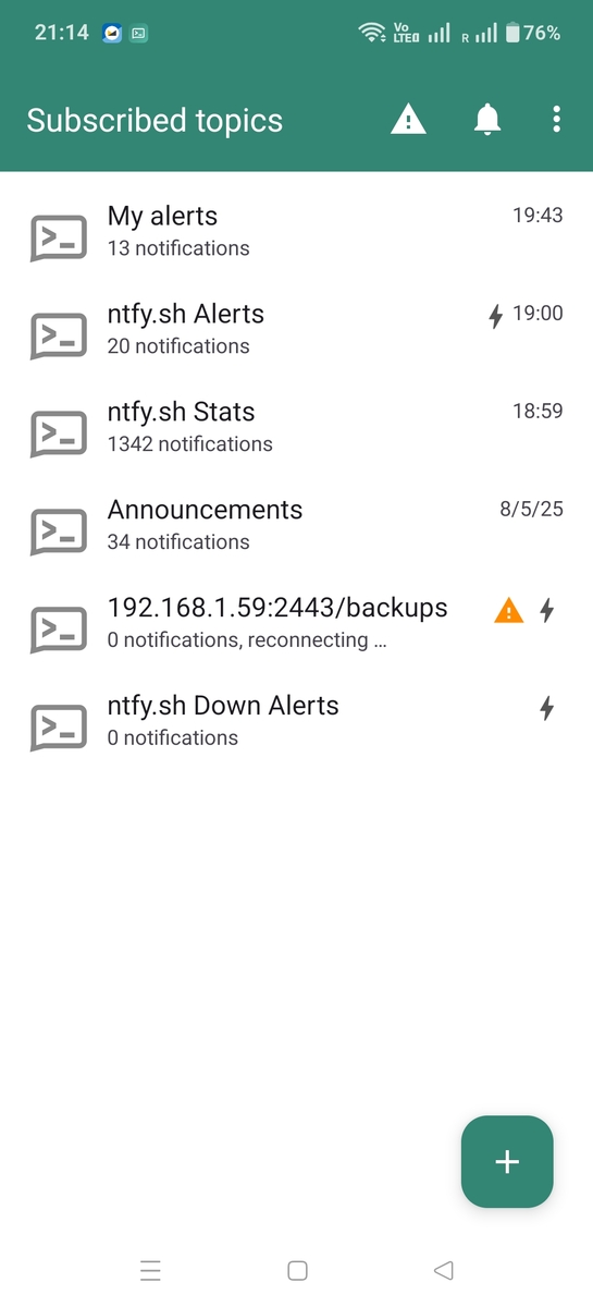 You can use the ntfy Android App or iOS app to receive notifications directly on your phone. Just like the server, this app is also open source, and the code is available on GitHub (Android, iOS). Feel free to contribute, or build your own.
